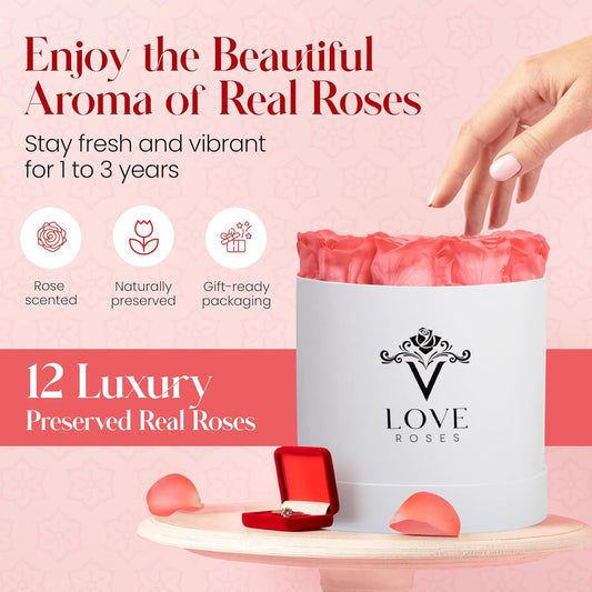 ® Forever Roses in a Box | Real Roses Forever Flowers Box | Naturally Preserved Flowers | Preserved Rose Box | Eternal Rose That Last a Year | Rosas Eternas | Valentines Day Gift for Wife (Pink)