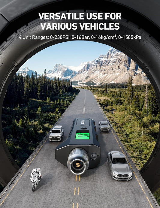 Digital Tire Pressure Gauge, 230 PSI 4 Settings Heavy Duty for Car Bicycle with Larger Backlit LCD Flashlight and Non-Slip, Black